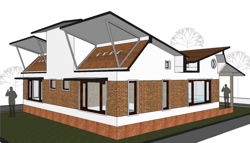 The form of this house is a direct result of climatic considerations. Located near Bhusawal, the site experiences extreme heat, with summer temperatures reaching up to 48°C. Additionally, the client faced the issue of monkeys damaging the Mangalore tile roofing. Due to this, the client strongly insisted on using an RCC roof.